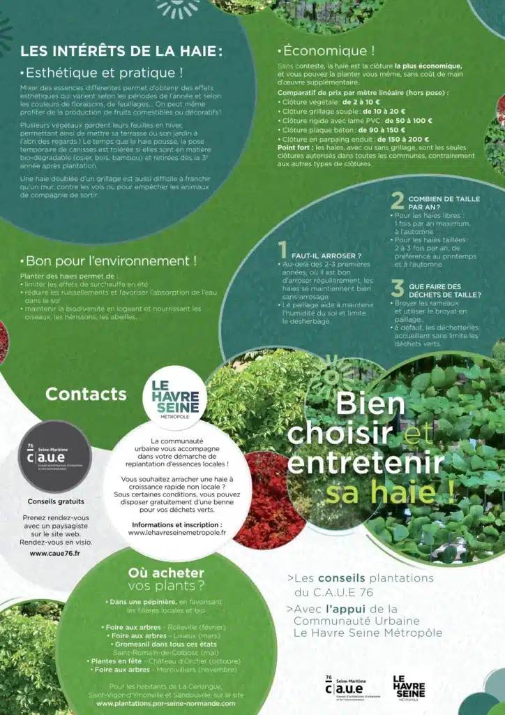 Bien choisir et entretenir sa haie, une fiche issue d’un travail en partenariat avec la Communauté Urbaine Le Havre Seine Métropole, réalisé en 2022.