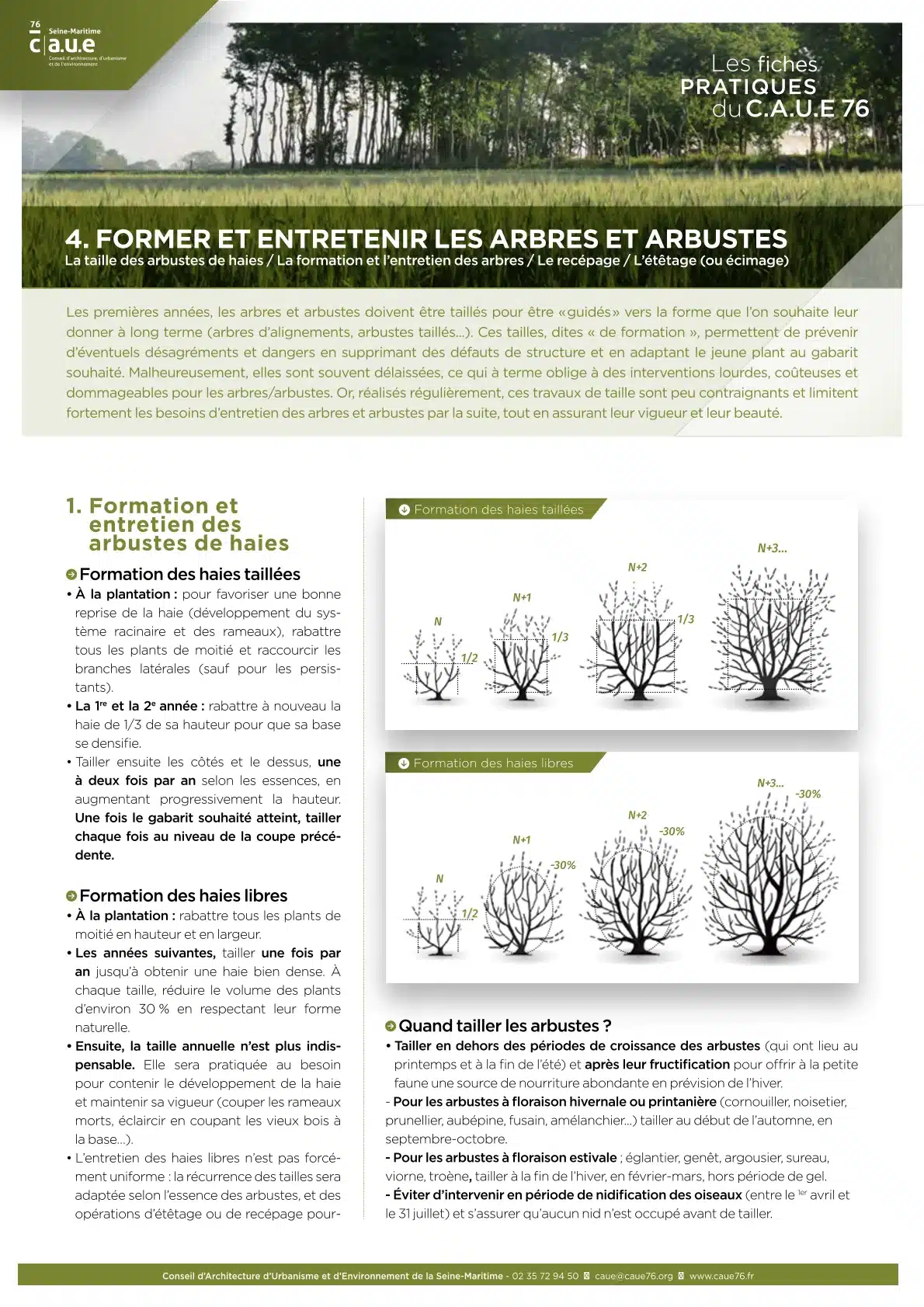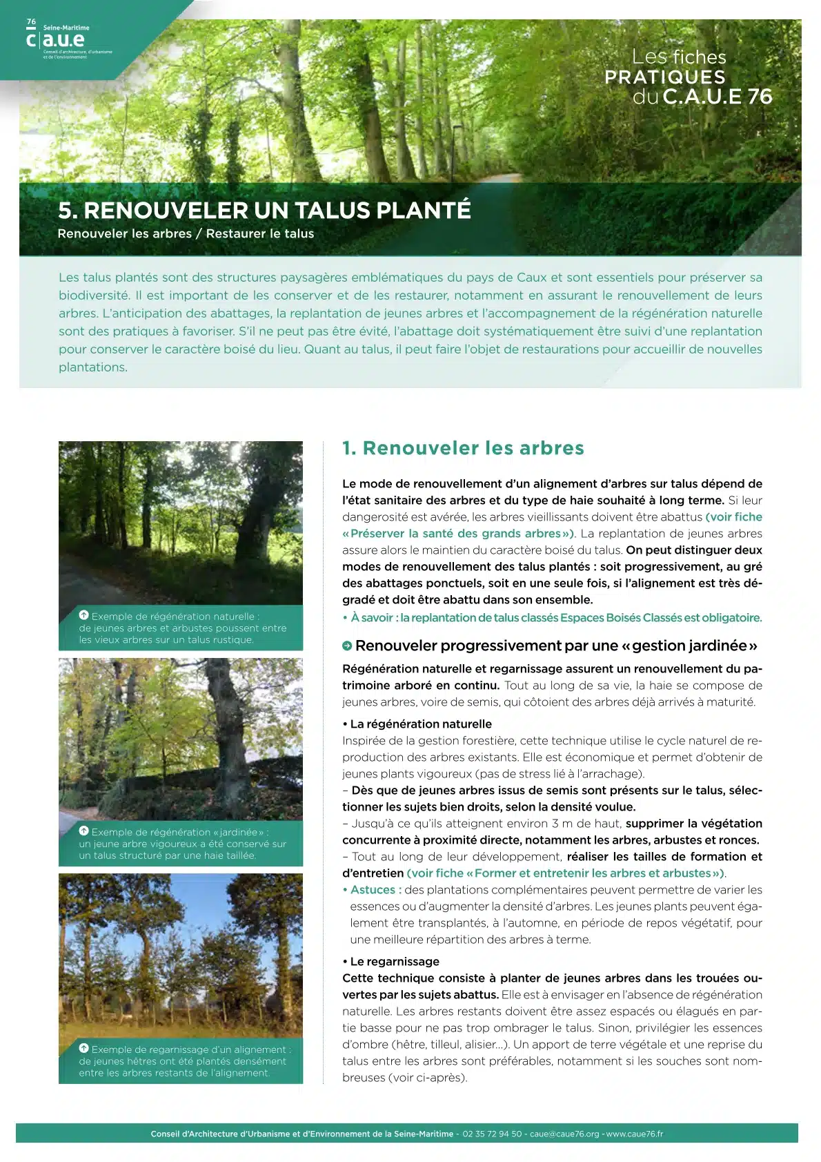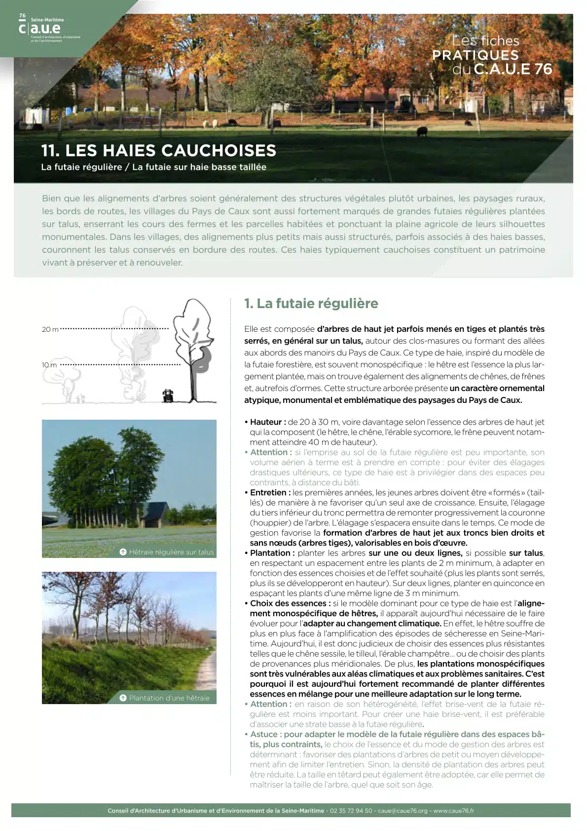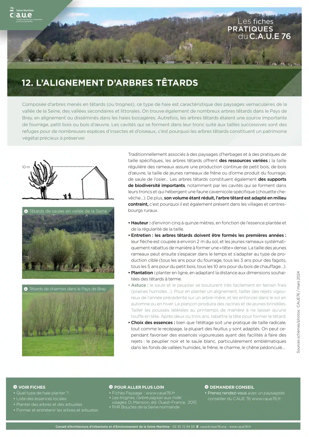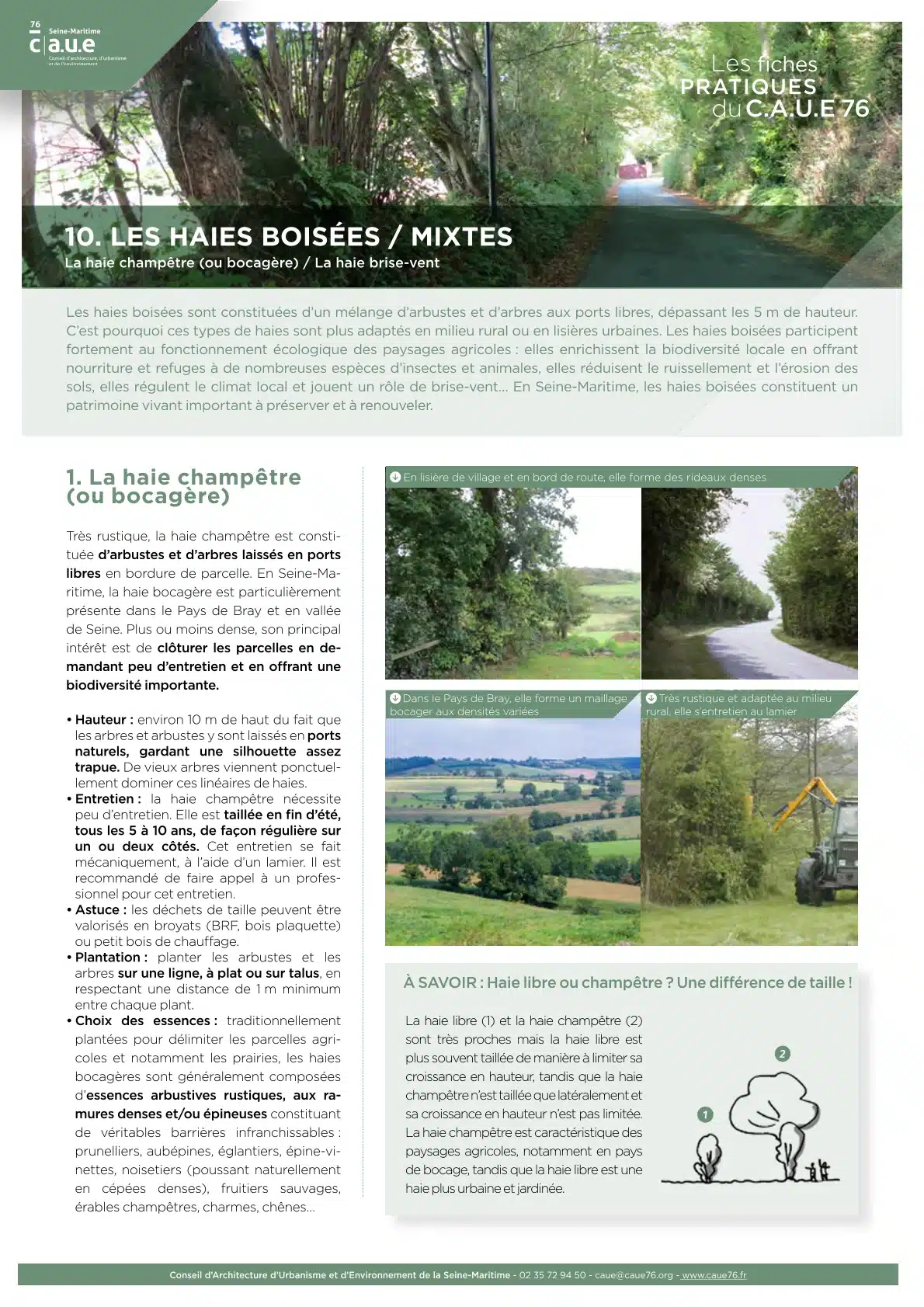 Le CAUE 76 vous propose une collection de 12 fiches pratiques pour répondre aux questions et problématiques les plus courantes sur les arbres, les haies et les talus en Seine-Maritime. Éditées une première fois en 2020, elles ont été mises à jour en 2024, pour prendre en compte le dérèglement du climat, et actualiser les informations.