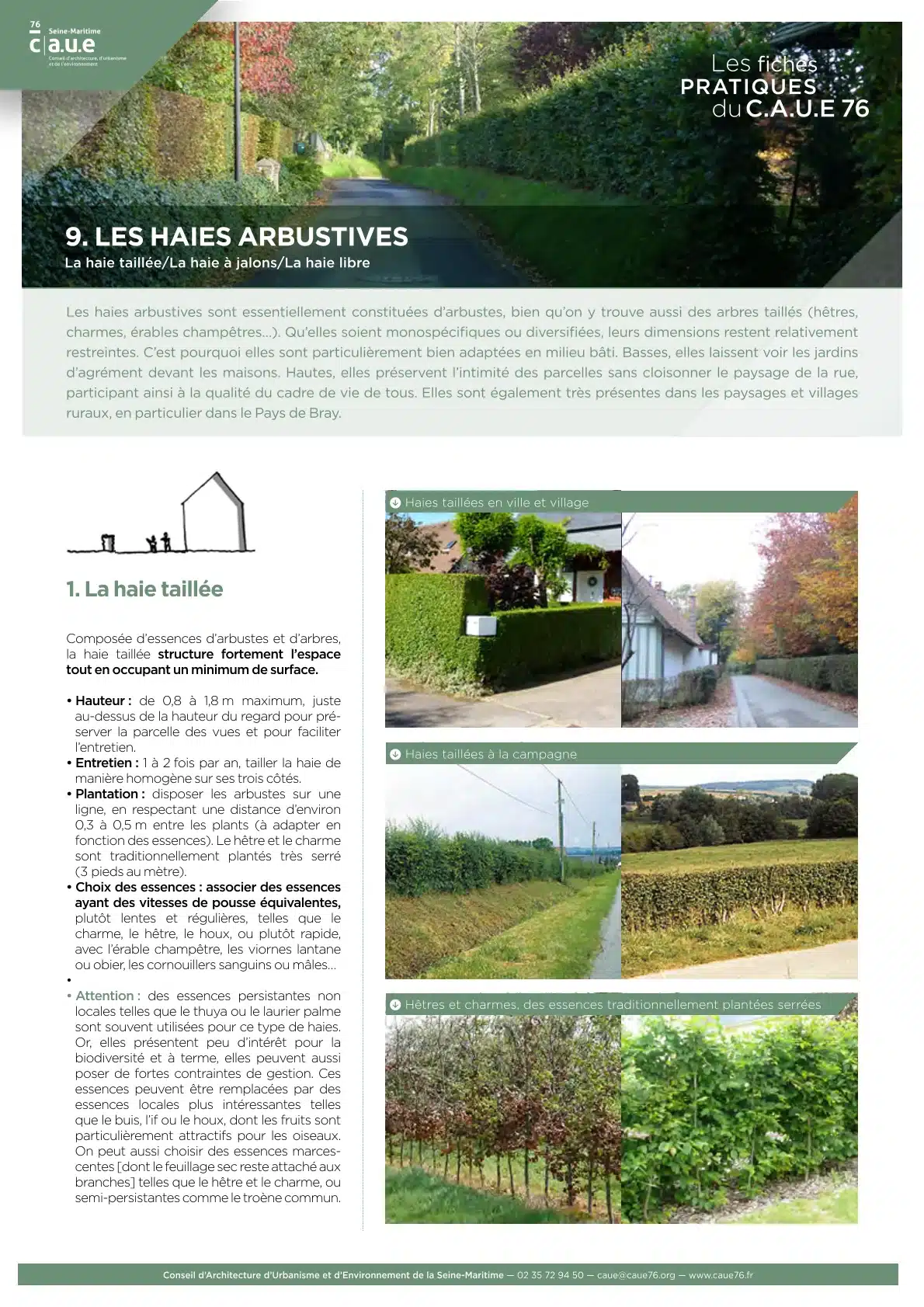 La haie présente de nombreux atouts, tant en milieu urbain que rural : régulation du climat, préservation de la biodiversité et renforcement de la trame verte, caractérisation des lieux et lutte contre la banalisation des paysages. Pour ces nombreuses qualités, les haies constituent un patrimoine vivant à préserver par un entretien adapté et à renouveler par de nouvelles plantations.